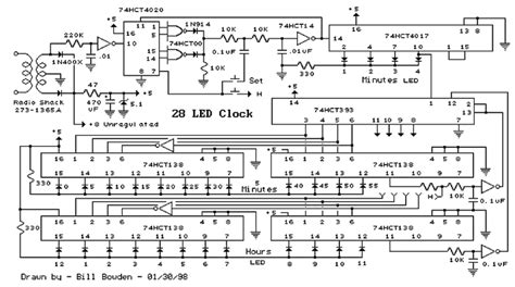 Web 28 Led Clock Timer June 22, 2010 This Is A Programmable Clock Timer Circuit That Uses Individual Leds To Indicate Hours And Minutes.