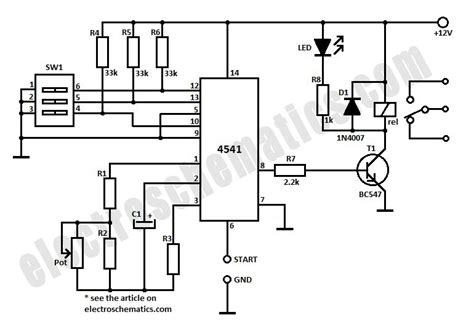 4541 Timer Circuit Diagram. When the power is applied the circuit does not start timing until the switch is closed then the timing starts. This electronic timer circuit is helpful when you need to power on/off any ac appliances.